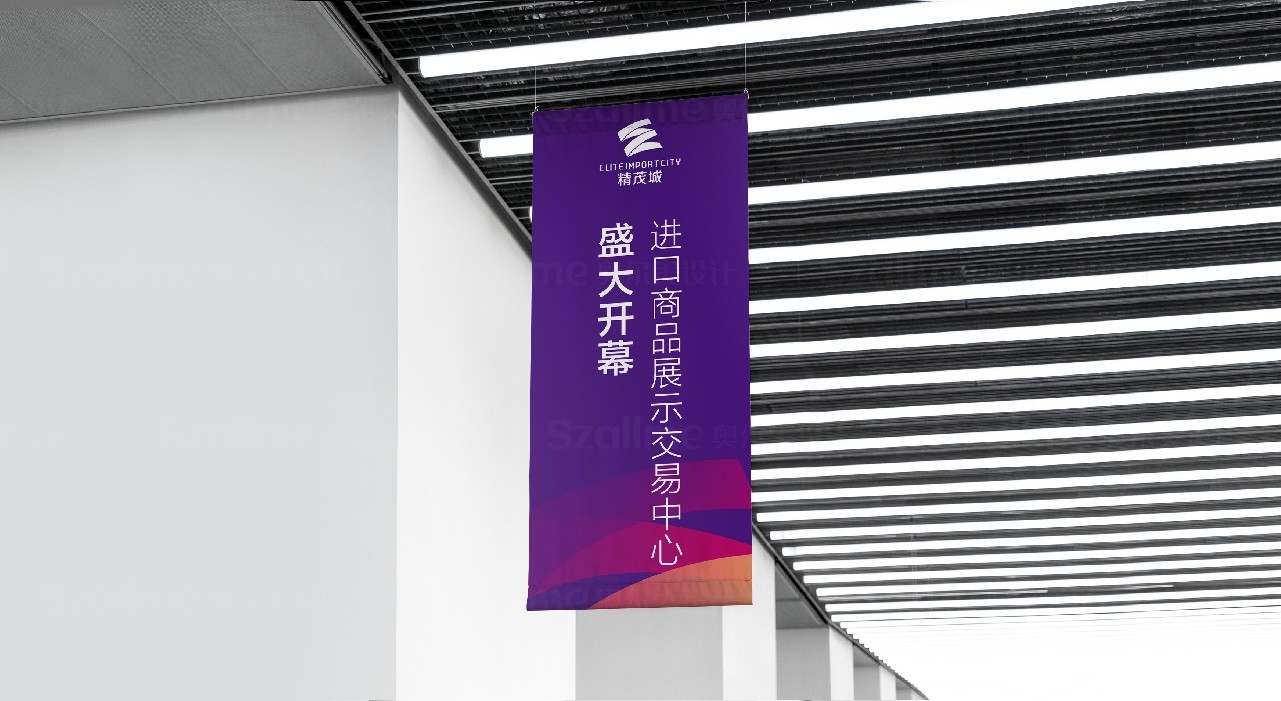 2、绘制出动感时尚的“E”字造型,同时"e"也蕴含着互联网之意,寓意着精茂城互联网+外贸“多业态、多形式”智能化外贸商品集散平台。