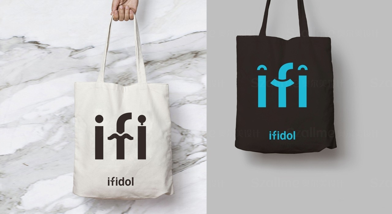 标志采用ifidol英文简称"ifidol" 进行创作,通过情感关联将字母"i” 和"i”的造型巧妙结合,视觉上呈现出微笑的表情。