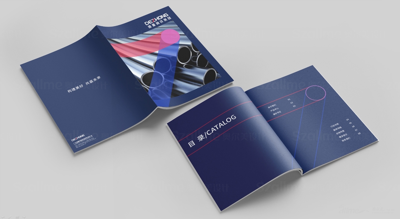 德重以成为卓越的钢铁服务商,创百年品牌为企业愿景,通过一站式钢材深度价值服务,实现数据互通、全链融合,为客户、员 工、股东、社会创造价值。为了突显竞争力、与同行形成差异。在品牌形象设计过程中,以英文名称“DEZHONG为创作元素,全新的品牌识别设计力求国际化、高品质,整体色调简约,平易近人有信赖感,投射创新、稳重、大气的品牌形象,传递独特的品牌DNA及国际化理念,加强品牌与顾客的情感联系。