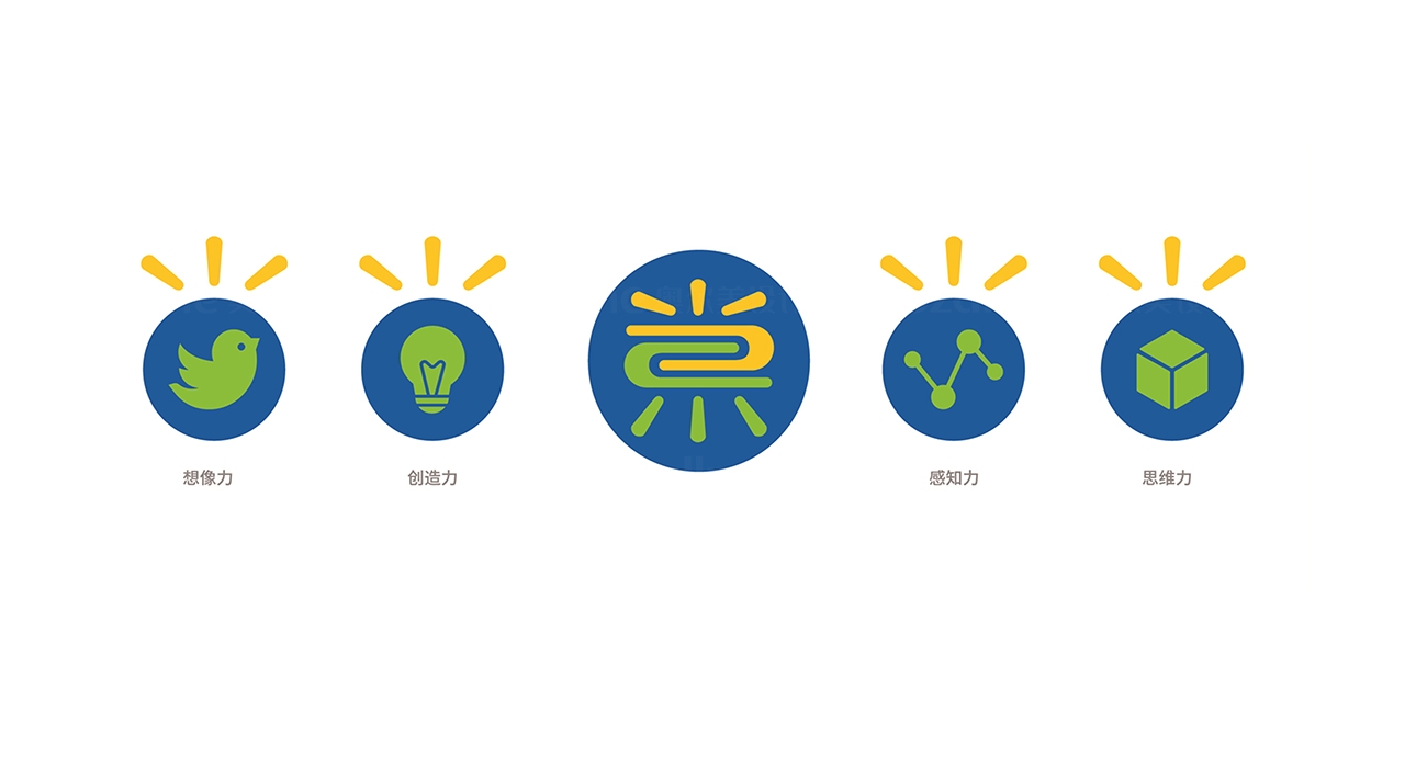 蓝色代表理想和探索知识。绿色代表健康和快乐成长。
