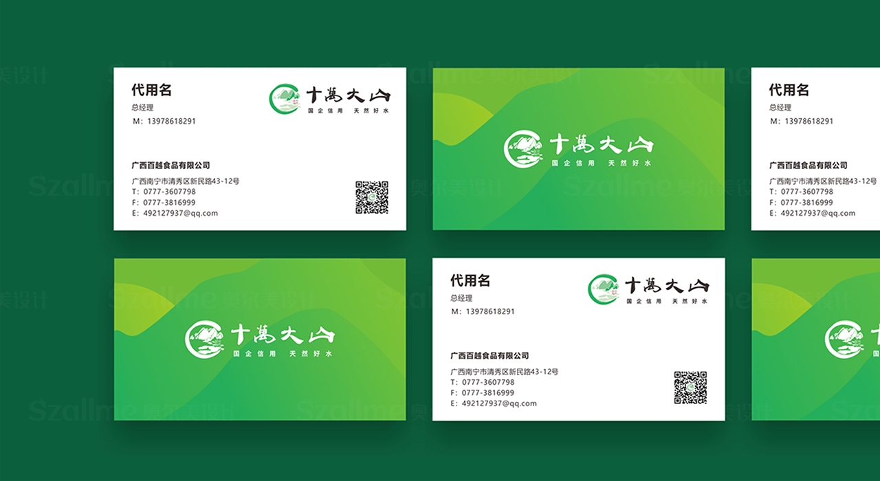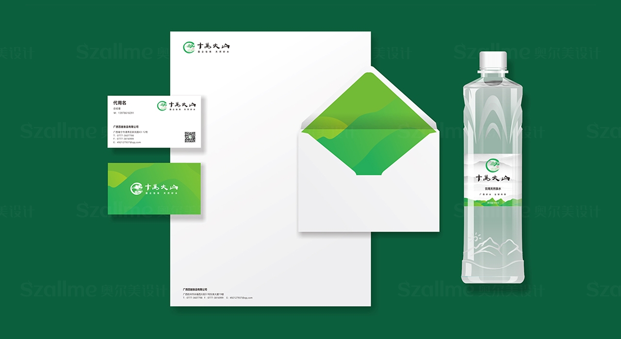 在对十万大山产品进行深入的了解与研究后,我们根据根据其产品特性,强调十万大山的绿色生态,纯洁干净,符合企业基本属性,标志采用十万大山独有的“十万大山”作为设计元素,同时结合“大山”、“水流”寓意蒸蒸日上、生命源泉,突出十万大山取天然十万大山而成的纯净大山水之意。