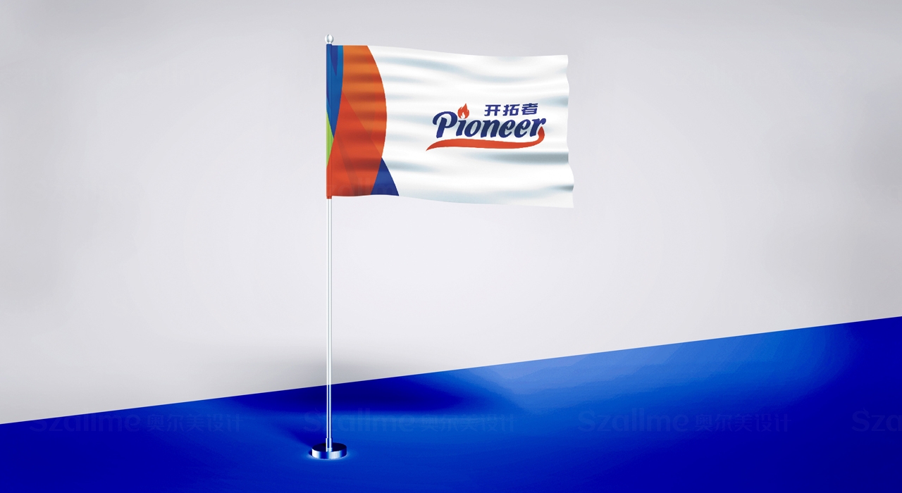 标志以英文Pioneer 为主体,“i”为创意点,设计成火炬的形象,代表光明、勇敢、团结和友谊,传递体育精神,飘带的造型突出开拓者一种活力,超越自我,追求卓越的体育风貌。整体字体设计传递一种快乐、向上、速度的视觉感。