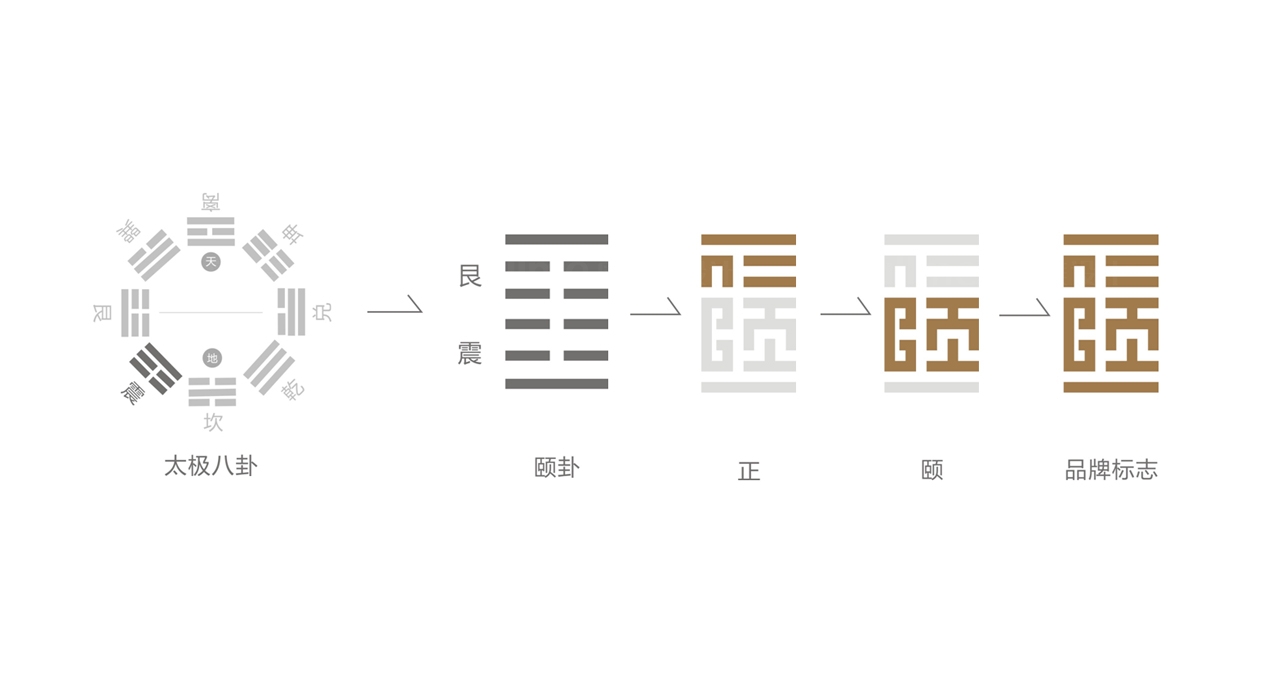道家认为,颐卦颐养之道,雷出山中,万物萌发,因此L0GO即是存正颐和的品牌名称,也蕴含了颐卦的美好寓意,LOGO色彩采用金色组合, 色代表金生,综合而言,存正颐和LOGO不仅简洁同时又蕴含深刻的传统文化吉祥寓意。