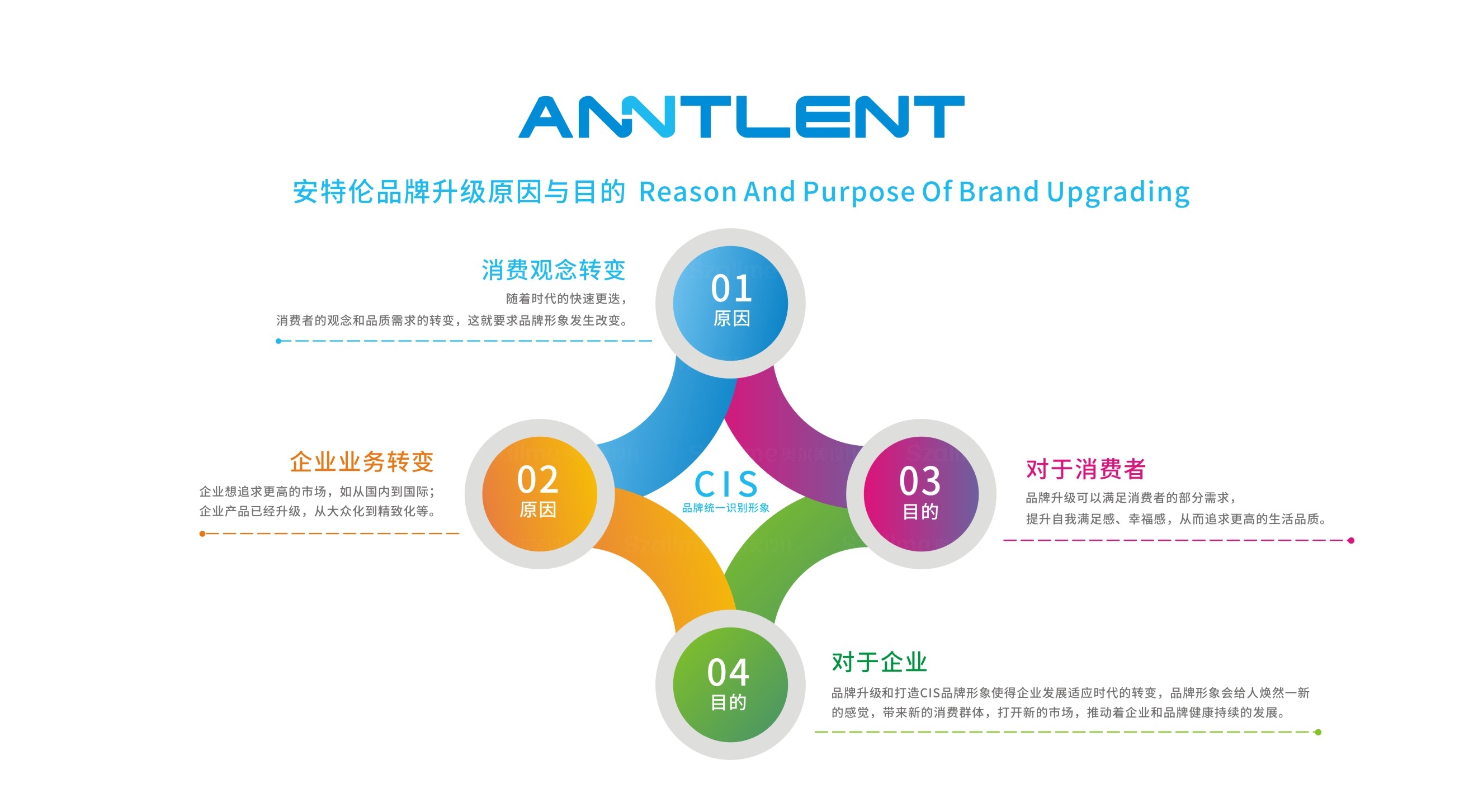 为了突显ANNTLENT品牌竞争力、与同行形成差异。在品牌形象设计过程中,借鉴其名英文名称“ANNTLENT”为创作元素,全新的品牌识别设计力求国际化、高品质,整体色调清新简约,平易近人,投射创新、年轻、活力的品牌形象,以反映独特的品牌DNA及理念,加强品牌与顾客的情感联系。