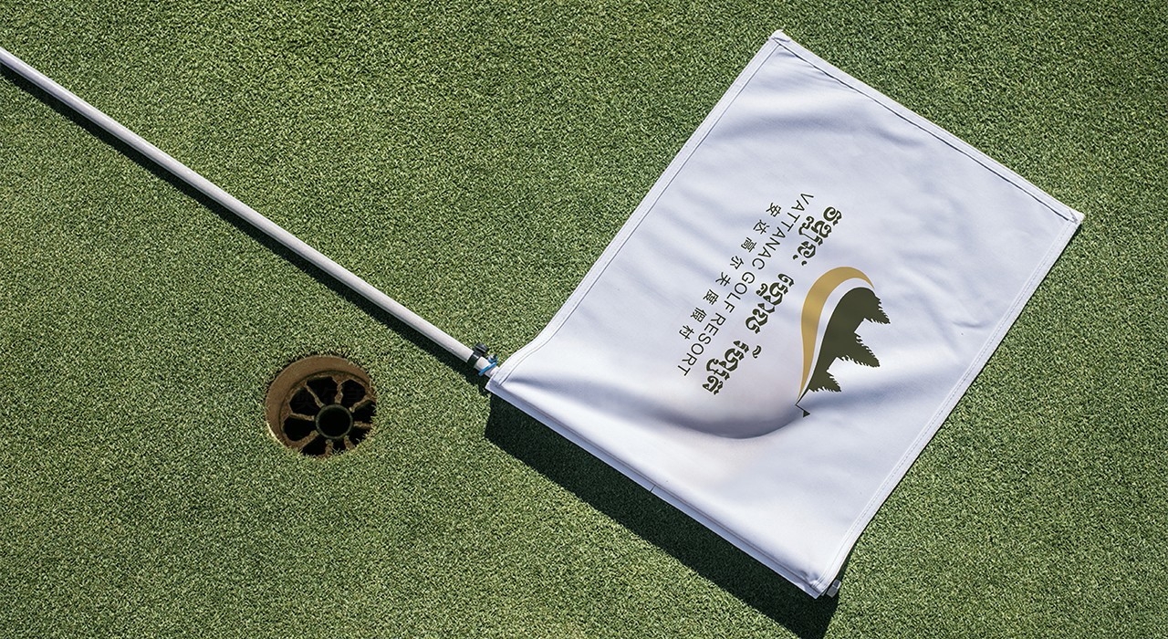 安达高尔夫度假村以柬铺寨吴哥窟建筑风格、草地、果岭旗做创意元素。