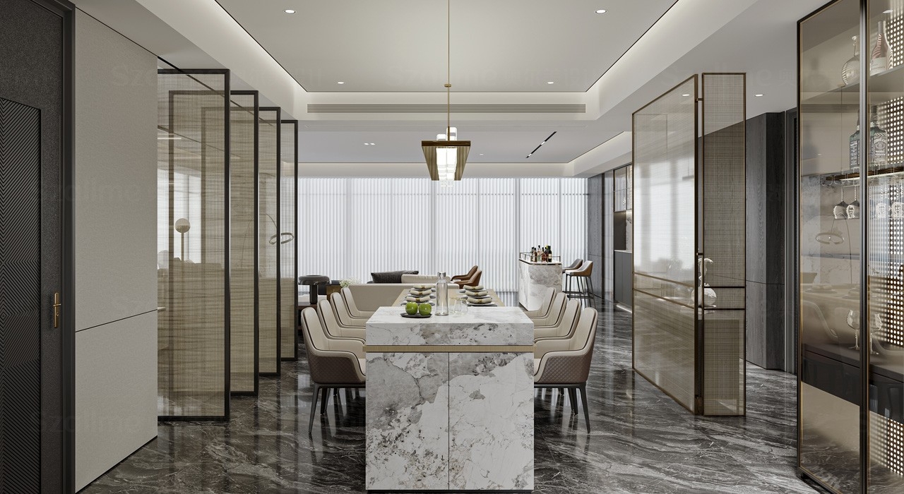 豪宅别墅空间设计彰显主人的个性与品味,别墅空间大,设计时需要充分利用每个区域,打造功能性和视觉效果兼备的空间。公共区域如客厅、餐厅、玄关等需要通过家具摆放或隔断来划分功能,私密区域如卧室、书房等需要更多的隐私感,可以通过隔音门或软隔断提升使用体验。选择合适的风格直接决定整体档次。新中式、现代简约和侘寂风是高端家庭的选择。新中式强调空间层次感与文化内涵,现代简约注重线条和材质的混搭,侘寂风则以自然为灵感,营造静谧感。让每一位居住者都能够在空间互动中创造更为亲密的情感联系,尽享个性而舒适的高品质生活。