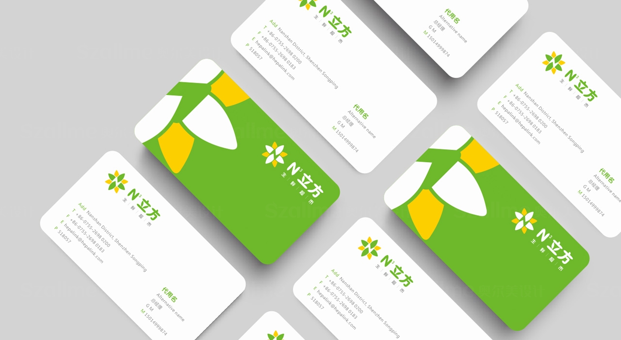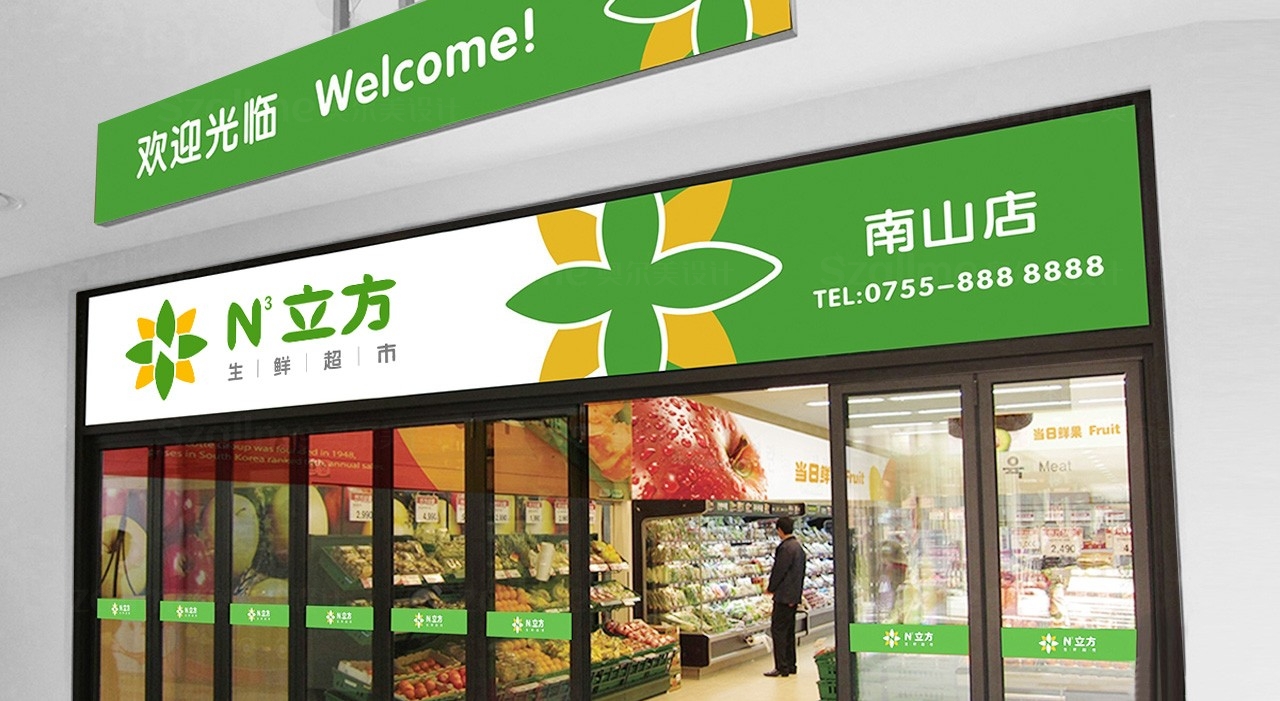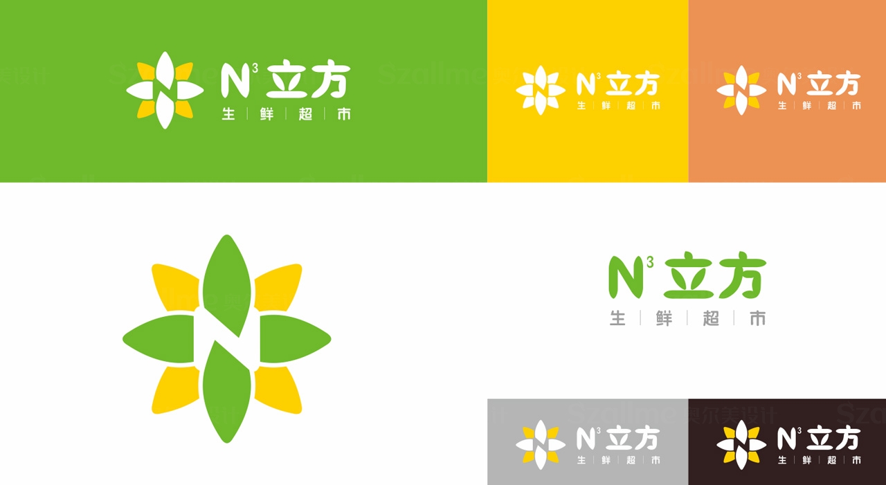 N立方生活超市是专业经营“三品一标”(无公害农产品、绿色食品、有机食品、地理标志农产品)的生鲜产品;N立方生活超市良好的自然环境使企业拥有了得天独厚的健康资源,同时也为“都市健康”品映美定了“绿色、健康”和谐、发展”的基础,在N立方生活超市讲行深入的了解与研究后,我们根据根据其产品特性,以绿色和橙色作为主色调,强调了N立方生活超市的绿色生态,纯洁干净,符合生鲜超基本属性。通过巧妙的字体设计,将中英文“N”与“阳光花”结合,体现出阳光与健康,一起绽放美好生活。