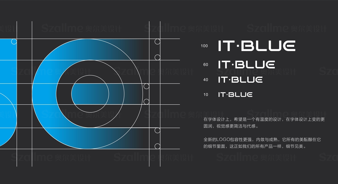 为了突显竞争力、与同行形成差异。在品牌形象设计过程中,借鉴其名英文名称“IT-BLUE”为创作LOGO元素,全新的品牌识别设计力求国际化、高品质,整体色调清新简约,平易近人,投射创新、年轻、活力的品牌形象,以反映独特的品牌DNA及理念,加强品牌与顾客的情感联系。